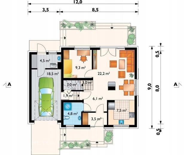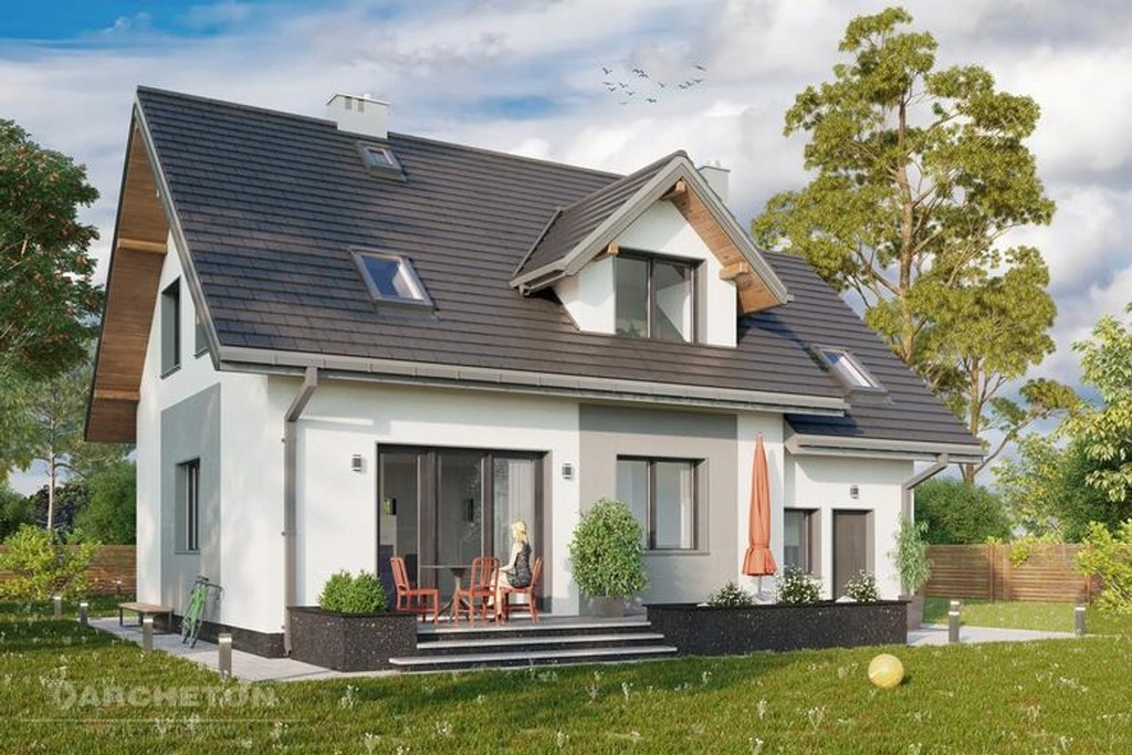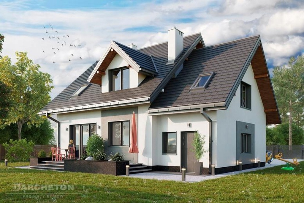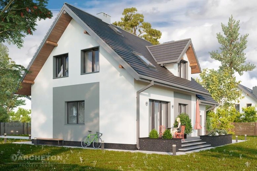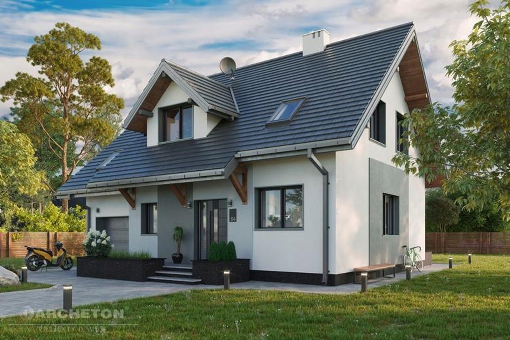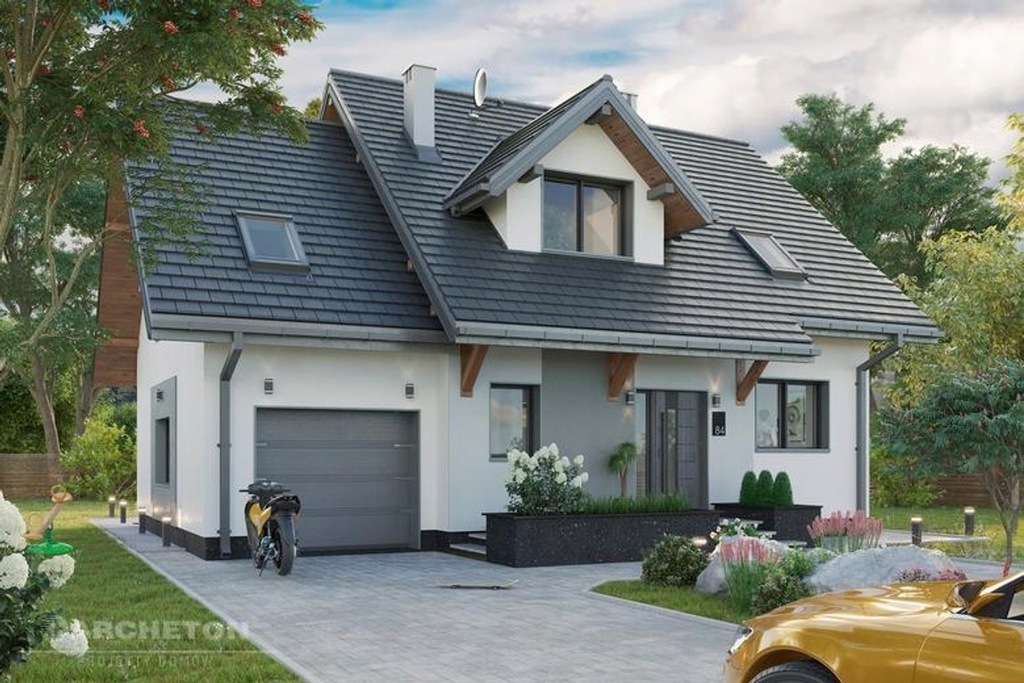 - Projekt domu z funkcjonalnym układem i garażem w bryle.