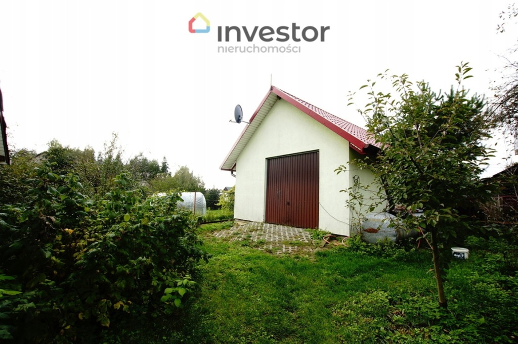 Zadbany ogród z oczkiem wodnym, drzewami owocowymi o powierzchni 11 arów, na którym dodatkowo znajduje się nowo wybudowany garaż o powierzchni 37 m2.