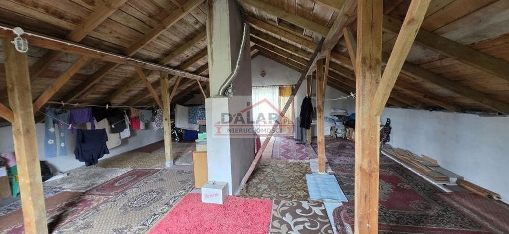 Dom parterowy z poddaszem użytkowym (poddasze niewykończone-do adaptacji). Na parterze domu znajdują się trzy pokoje w amfiladzie, widna i przestronna kuchnia, łazienka z oknem, korytarz, ganek oraz częściowo zabudowany hol wejściowy. Ponadto budynek jest w pełni podpiwniczony (piec węglowy), oraz posiada poddasze użytkowe do ewentualnej adaptacji /wykończenia.
