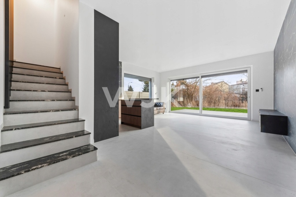 The new property has been finished to a high standard, wooden floors, architectural concrete on the first floor. Underfloor heating throughout the house and very large glazing, which beautifully illuminates the entire house. The kitchen is equipped with household appliances of well-known brands. It is possible to furnish the property.