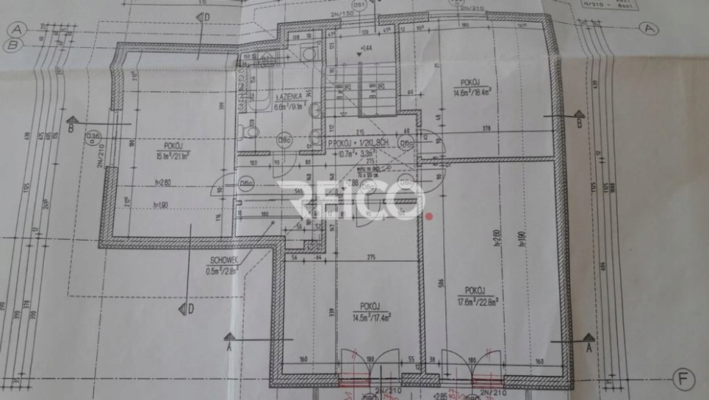 Na piętrze cztery przestronne pokoje 22,5m2, 14m2, 15m2, 17m2, łazienka 6.6m2. W przedpokoju szafa garderoba. Schody na piętro wyłożone terakotą. Dom w dobrym stanie technicznym i estetycznym, do odświeżenia, zainstalowany energooszczędny nowy piec CO i ciepłej wody. Do zagospodarowania duże 80 m2 poddasze. Garaż na jeden samochód w bryle budynku, ale jest możliwość dobudowania drugiego. a plany pozwalają.