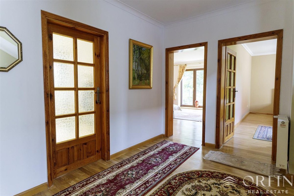 Podłogi parkiet dębowy i schody dębowe. We wszystkich pomieszczeniach wymienione okna. Możliwość zrobienia kuchni na każdym poziomie, obecnie łazienka na każdym poziomie oraz kuchnia na parterze. We wszystkich pomieszczeniach parkiet dębowy, w łazienkach ogrzewanie podłogowe. Nowy piec 2 funkcyjny z zasobnikiem.