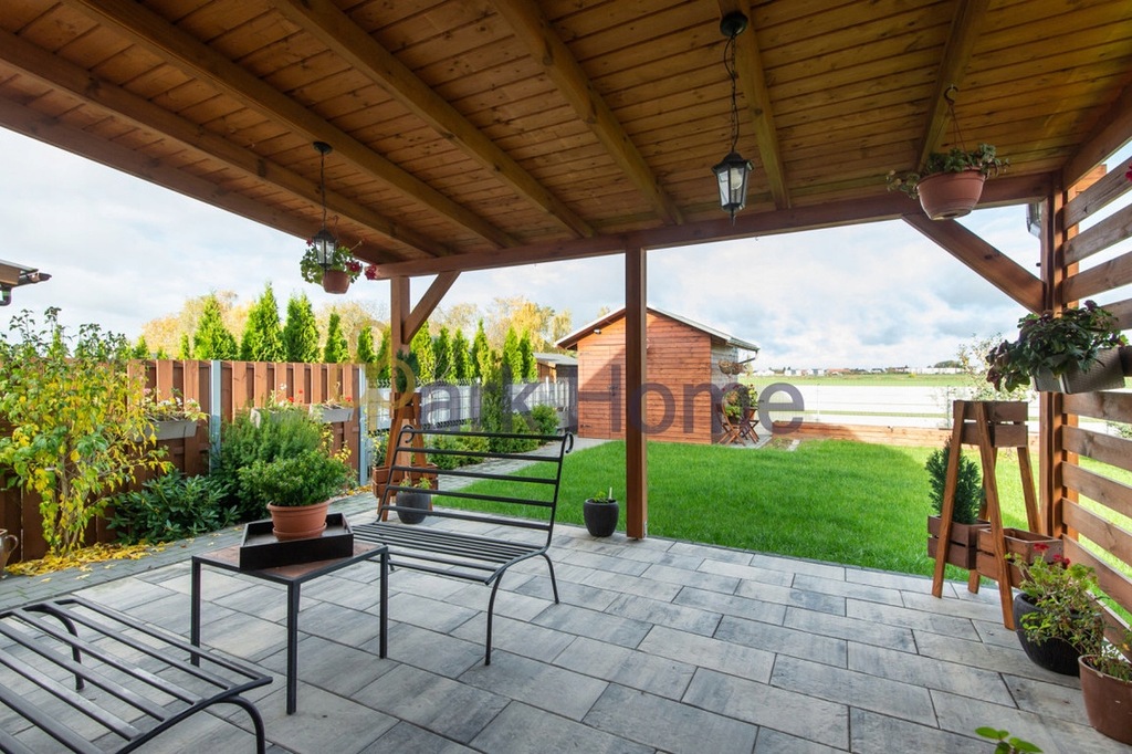 Działka o powierzchni 373m2 w pełni zagospodarowana. Przed domem jest miejsce na mały ogródek i 3 miejsca postojowe. Brama zapewnia dostęp do ogrodu. Za domem jest miejsce na trawę, rośliny ozdobne oraz mini ogródek warzywny. Drewniana szopa ok. 9m2 na narzędzia i sprzęt ogrodniczy oraz na rowery. Jest jeszcze jedno pomieszczenie gospodarcze ok 5m2 do zagospodarowania.