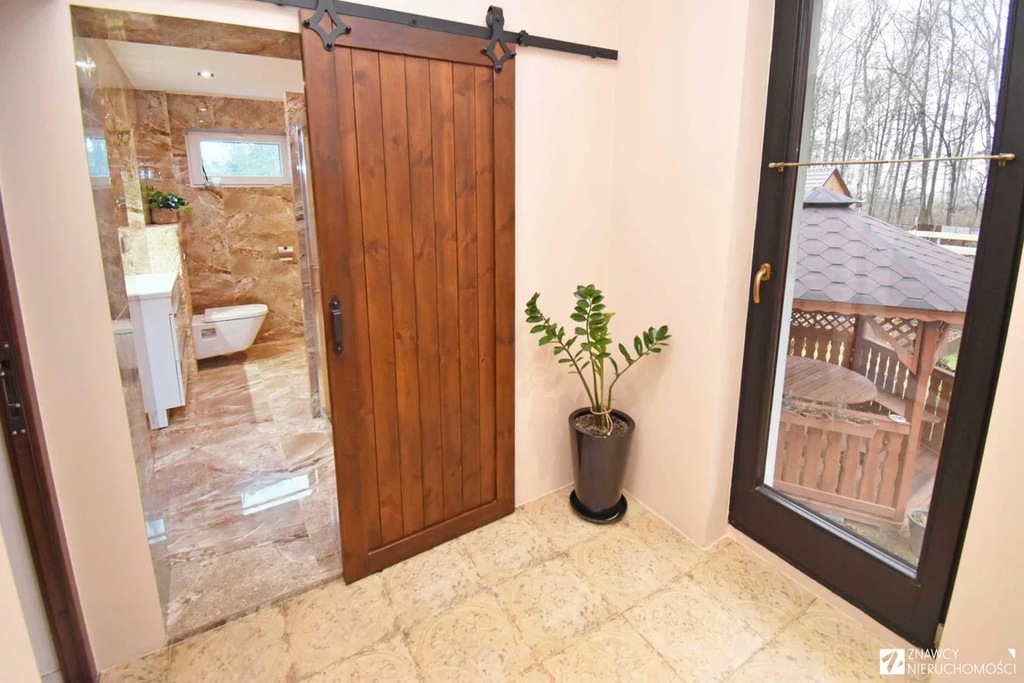 Najbliższe sąsiedztwo zadbane. Tuż za ogrodzeniem tereny zalesione z drzewami liściastymi i iglastymi. Dojazd pod sam dom utwardzoną drogą szutrową gminną, dalej brukowana i asfaltowa. Przed domem miejsca postojowe. Kilka minut pieszo do infrastruktury centrum Wojkowic w tym komunikacji miejskiej zapewniającej m.in. szybki dojazd do Katowic.