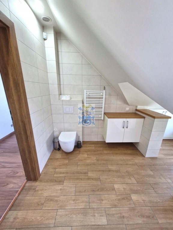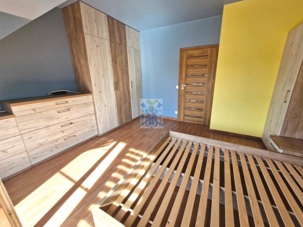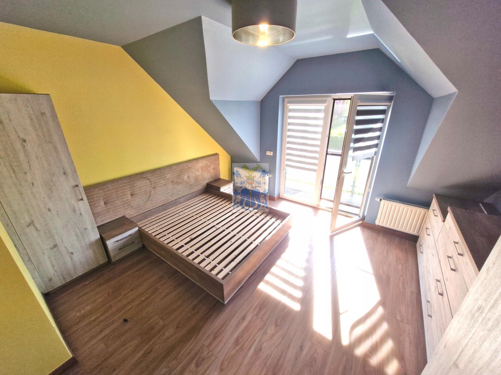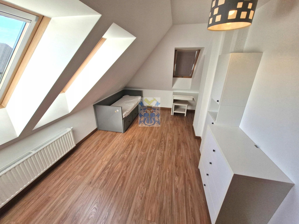 Na parterze toaleta z umywalką. Pokoje na piętrze umeblowane. Jedna z sypialni posiada wydzielony kącik biurowy (z dwoma biurkami, oddzielony przesuwnymi drzwiami).