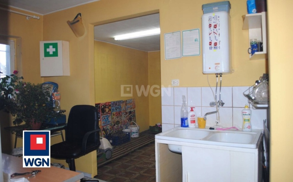 Dom zlokalizowany jest w Centrum miejscowości w sąsiedztwie szkoły podstawowej, przedszkola, licznych punktów handlowych oraz ośrodka zdrowia. Dom znajduje się na blisko 3arowej ogrodzonej działce z miejscem np. pod placem zabaw, altanę z miejscem na grilla lub ognisko. Nieruchomość składa się z ponad 50m2 sali na której dotychczas znajdował się sklep spożywczy, zaplecza socjalnego, magazynu oraz WC. W czasie działania punktu handlowego ogrzewany on był klimatyzatorami, które aktualnie zostały zdemontowane.