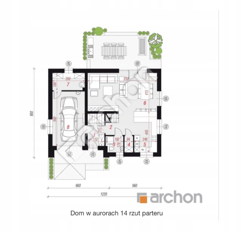 Projekt Domu Dom w Aurorach 14 Archon - powierzchnia - 154, 75 m2 (powierzchnia domu + garaż + kotłownia)