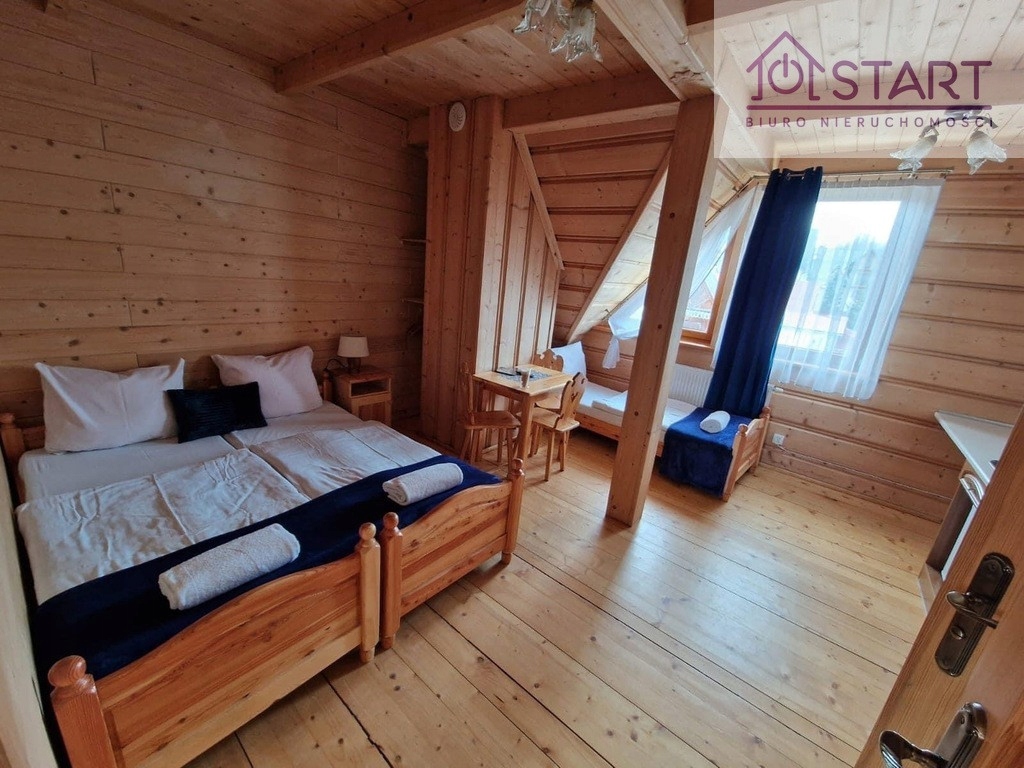 Doskonała lokalizacja, budynek utrzymany w góralskim klimacie - 8 komfortowych pokoi w pełni wyposażonych z łazienkami ( 2,3,4,6 osobowe w tym dwupoziomowy apartament-niektóre posiadają aneksy kuchenne oraz balkony) dodatkowo na jednym z pięter znajduje się kuchnia ogólnodostępna