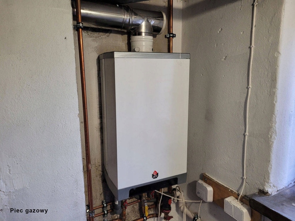 Instalacja elektryczna miedziana. Budynek ogrzewany centralnie nowym kotłem grzewczym gazowym dwufunkcyjnym (2 lata gwarancji). Alternatywne źródło ogrzewania to piec węglowy.