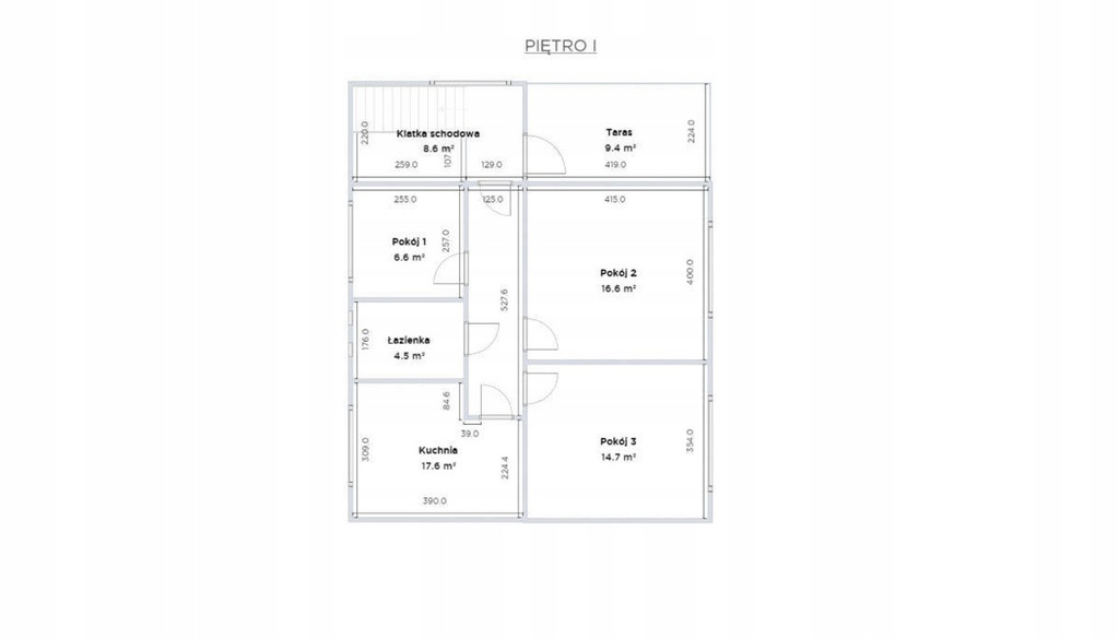 Aktualnie na każdym piętrze jest taki sam układ pomieszczeń tj.: kuchnia, łazienka oraz trzy pokoje (zrzut pięter na zdjęciach).