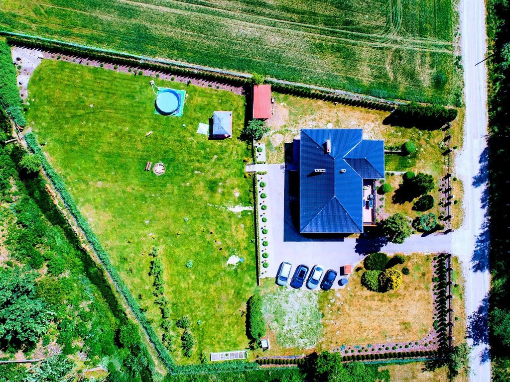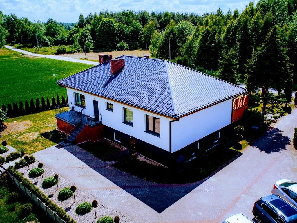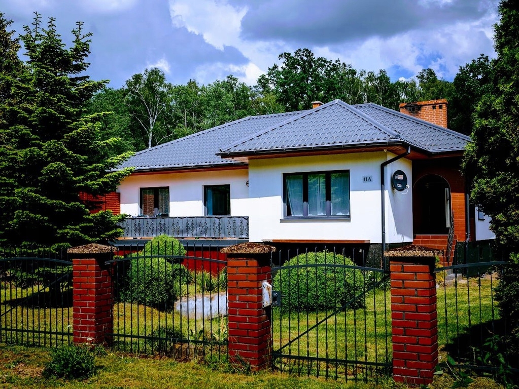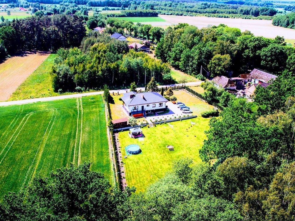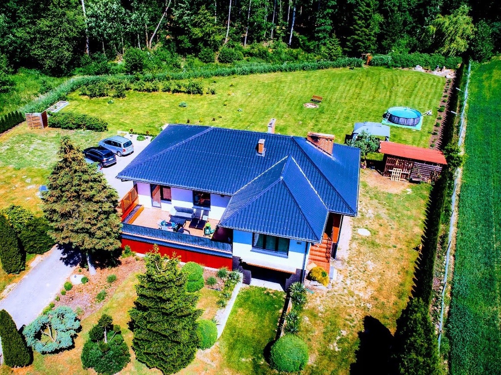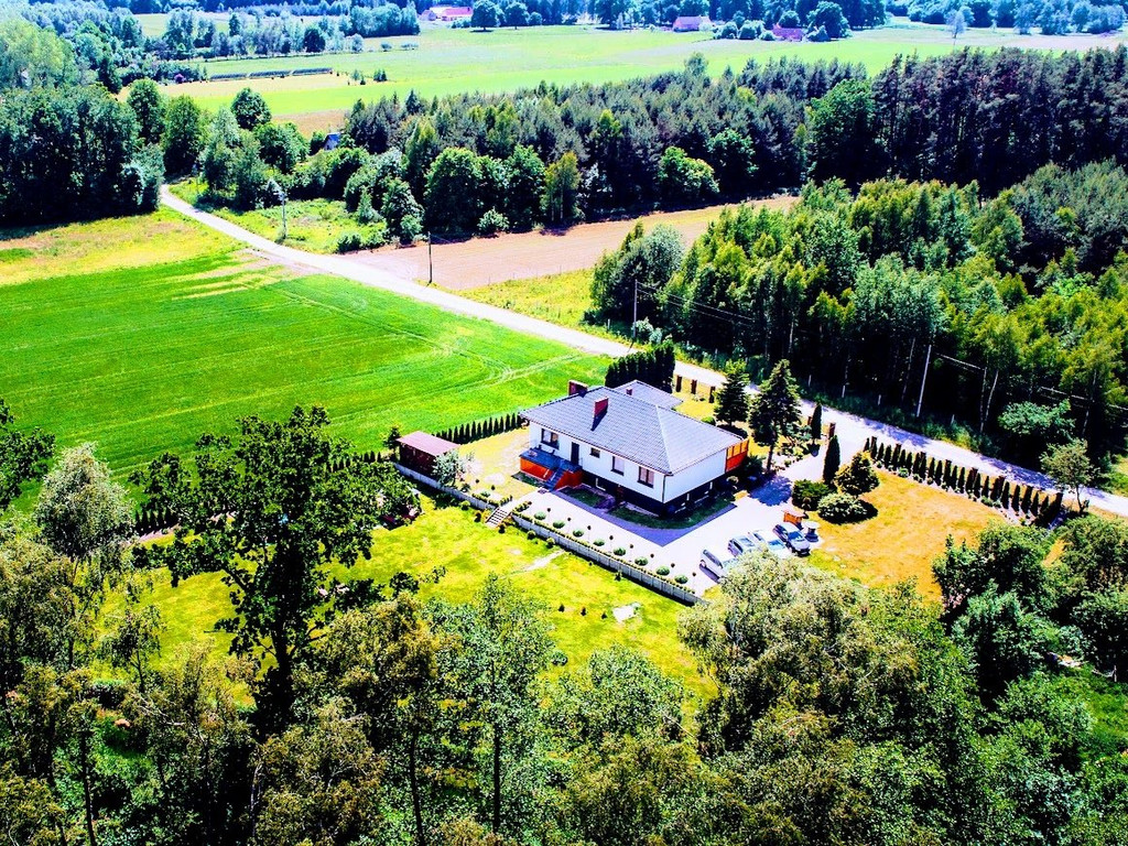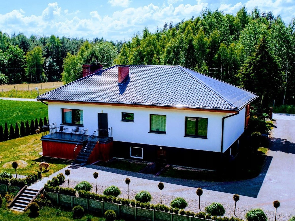 Miejscowość oddalona od Białogardu 8km , od Koszalina 20km. Teren jest monitorowany a dom posiada oświetlenie zewnętrzne. Wolnostojący o powierzchni 150 m2, 4 pokoje, wybudowany w 2006 roku. Działka 3800 m2. Budynek z poddaszem, w stanie do zamieszkania, z osobną kuchnią Taras, piwnica, garaż. Materiał budowy: pustak, dach: blacha, okna plastikowe Dojazd: utwardzony, ogrodzenie: siatka Media: woda, oczyszczalnia przydomowa, prąd. Na parterze znajduje się kuchnia - osobna, przestronny korytarz, salon z którego jest wyjście na taras, łazienka oraz cztery dodatkowe pokoje ( z jednego jest również wyjście na balkon. Z korytarza znajduje się zejście do garażu, pralni, oraz pomieszczenia gdzie znajduje się piec ( dom opalany drewnem) Dodatkowym atutem nieruchomości są cztery kolejne pomieszczenia ( dwa pokoje, kuchnia, łazienka- stan surowy) znajdujące się w niskim przyziemiu. W każdym pomieszczeniu - oprócz łazienki znajdują się okna. Na działce znajdują się liczne nasadzenia, granicą działki jest rzeka oraz las, w niedalekiej odległości znajduje się rzeka Radew.