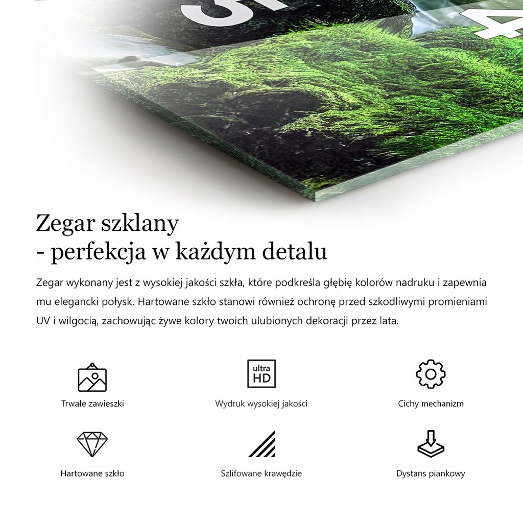 🎨 Zegar, który wybierasz, to produkt wykonany ze szkła z nadrukiem graficznym.