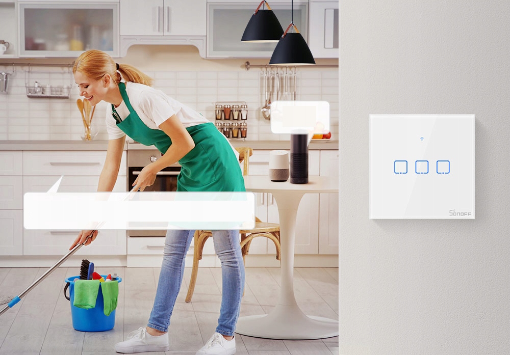 Ten przełącznik wyposażono w możliwość sterowania bezprzewodowego przez sieć Wi-Fi. Dzięki trzem przyciskom dotykowym można go również używać jako tradycyjnego włącznika. Jest umieszczona w chmurze AWS, dzięki czemu urządzeniem można sterować z każdego miejsca na świecie. Jest kompatybilny z Amazon Alexa, Google Assistatnt i Google Nest, dzięki czemu może byś sterowany komendami głosowymi.