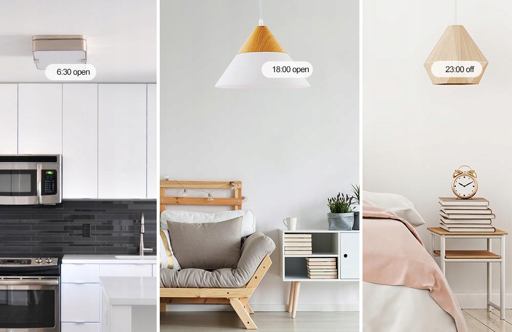 Może na raz kontrolować trzy obwody oświetleniowe w domu. Pozwala na indywidualne włączanie i wyłączanie światła oraz ustawianie harmonogramów pracy lamp. Jest kompatybilny z Amazon Alexa, Google Assistant, IFTTT i Google Nest.