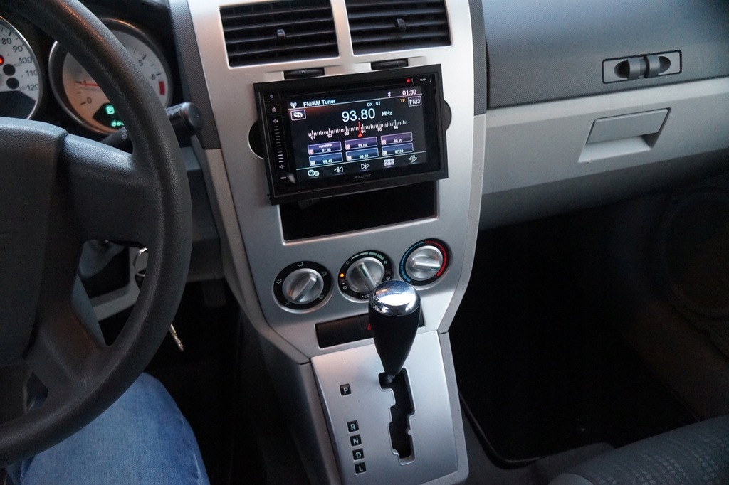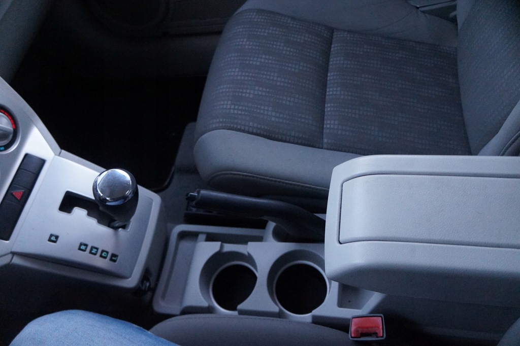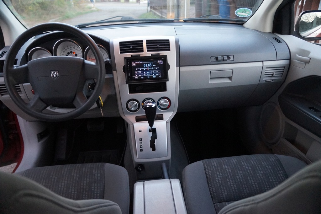 Wnętrze samochodu czyste zadbane, tapicerka ciemna , jasne elementy plastikowe