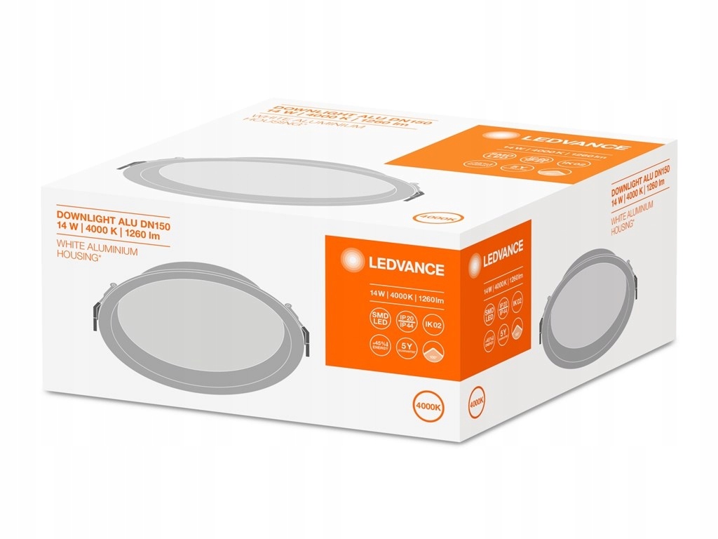 Downlight LED DL ALU DN150 14W 4000K 1260km IP44/20 o numerze katalogowym 4058075091450 w kategorii Oprawy Downlight LED, Oprawy wewnętrzne LED. Produkt wyprodukowany przez markę LEDVANCE.