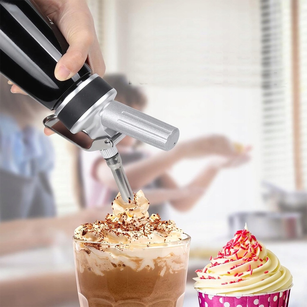Ten dozownik śmietany jest idealny do dekorowania bitej śmietany, tortów urodzinowych, lodów, sera, ciast, koktajli i innych deserów. Będziesz zachwycony jego wszechstronnością i wygodą.