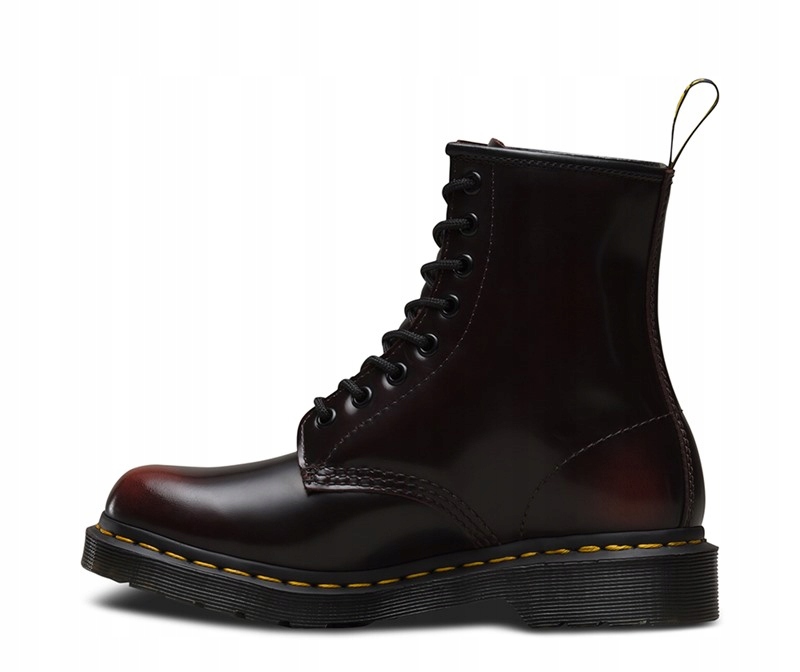 Oryginalne trzewiki z kolekcji obuwia Dr. Martens. Sznurowane na osiem dziurek. Wykonane z lekko nabłyszczanej, gładkiej skóry naturalnej w kolorze cherry red rub off (skóra bordowa w kolorze lekko cieniowanej, ciemnej wiśni). Podeszwa doszywana do wierzchu buta przy pomocy słynnej, żółtej nici (technologia Goodyear Welted). W podeszwie umieszczona charakterystyczna dla martensów tzw. poduszka powietrzna. KLASYCZNE PRZECIERANE BURGUNDY