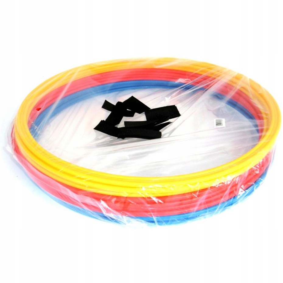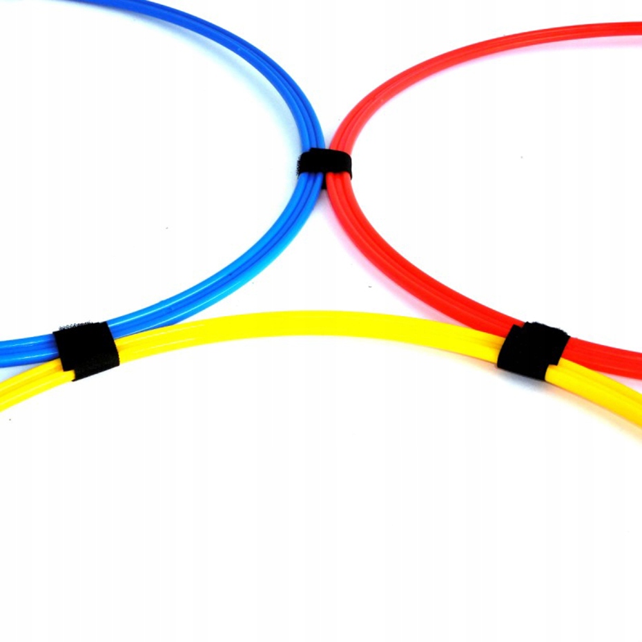 - W każdym zestawie znajdziesz 10 obręczy w trzech kolorach oraz praktyczny zestaw rzepów, za pomocą których połączysz obręcze w dowolną kombinację.