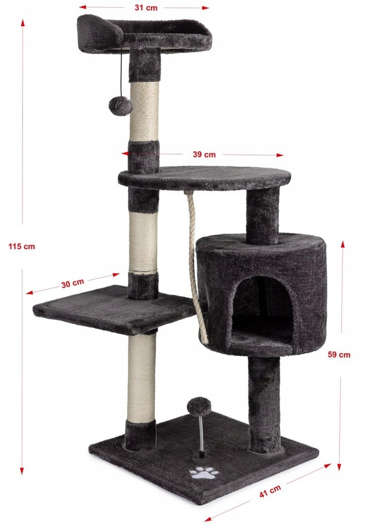Czy jeden koci mebel może mieć wiele funkcji? Oczywiście! Przedstawiony model drapaka to nie tylko zwykła powierzchnia do drapania i pielęgnacji kocich pazurów! To przytulny domek dla kota, wygodne platformy do leżenia i zabawne piłeczki do trącania łapką i łapania. Twój kot będzie mógł się schować, odpoczywać oraz bawić.