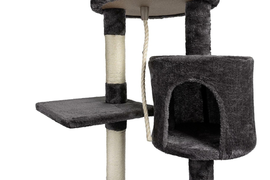 Sizalowy sznur. Stworzona powierzchnia do drapania jest bezpieczna dla kota i wytrzymała. Ten drapak posłuży kotu na dłużej. Będzie mógł ścierać i pielęgnować na nim swoje pazury oraz swobodnie rozciągać ciało.