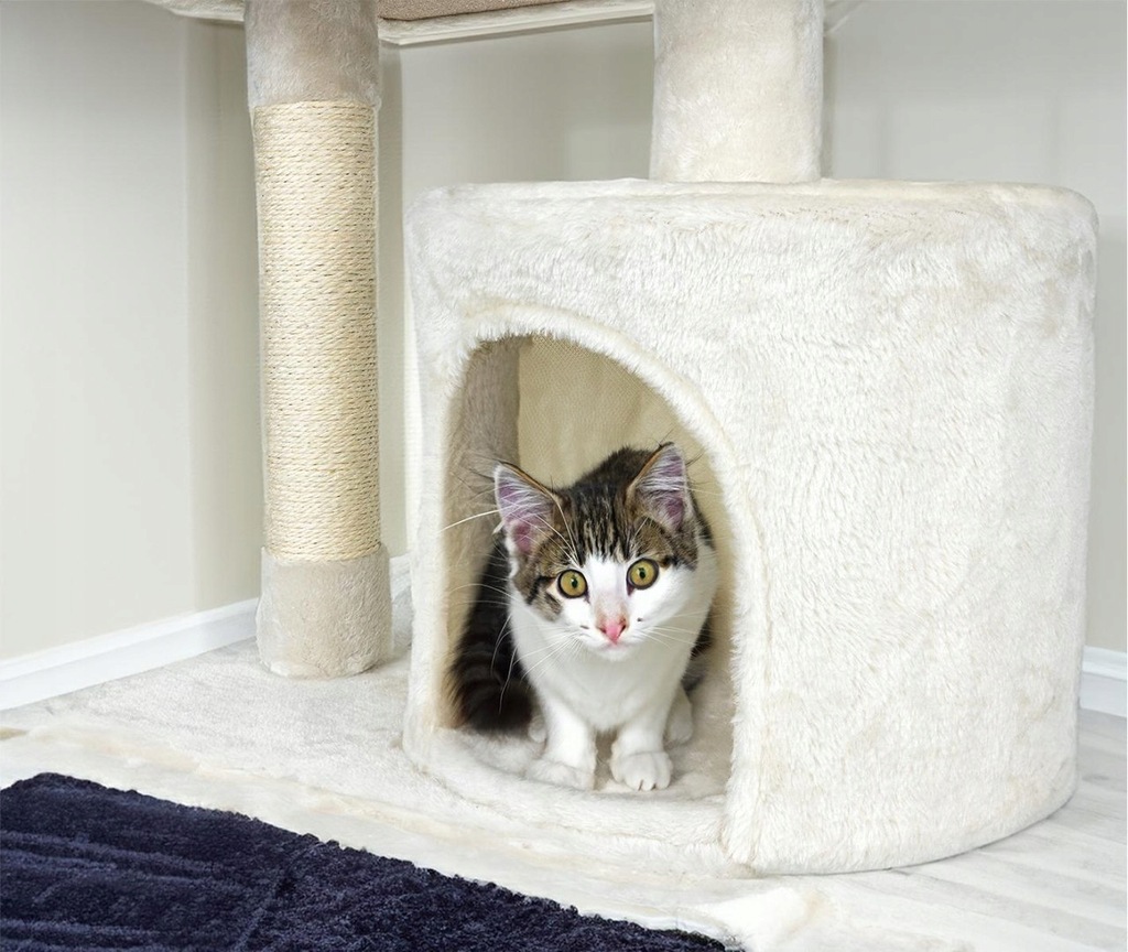 Twój pupil z pewnością doceni Twoje starania i to, że zapewnisz mu komfortowe miejsce odpoczynku i zabawy. Drapak jest stworzony zarówno do spędzania spokojnych chwil w kryjówce, jak i obserwowania świata wokół. Jest solidny i wielofunkcyjny, by Twój kot cieszył się nim przez długi czas i na wiele różnych sposobów.