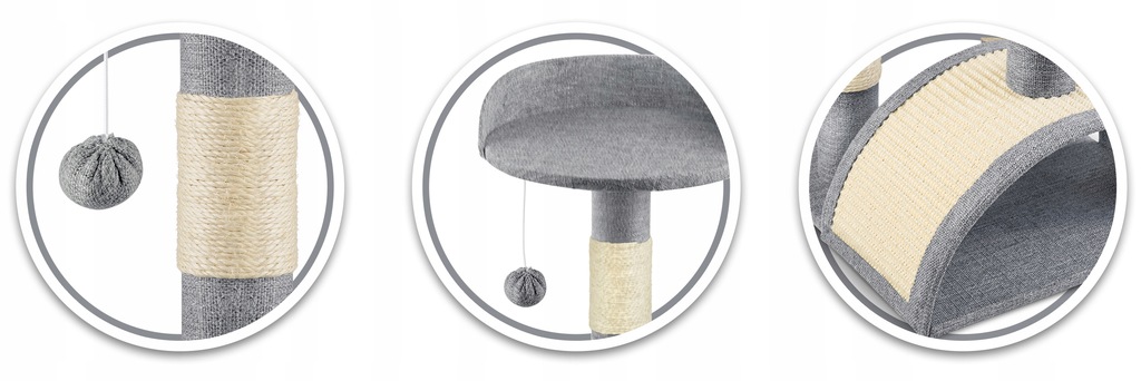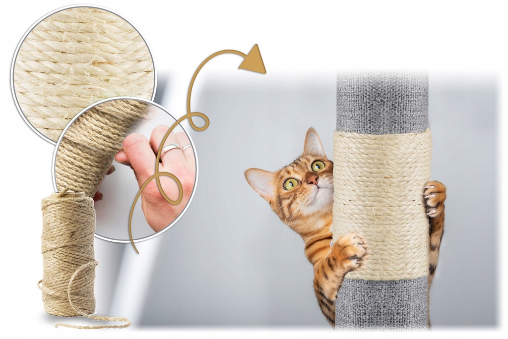 - 4 słupki pokryte mocnym sznurem sizalowym do ostrzenia pazurków,