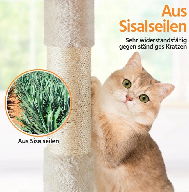 Yaheetech Cat Tree Cat Tree Solidny drapak dla kota Meble dla kota, drzewo wspinaczkowe dla kotów Wysokość 158 cm, beżowy 592468 beige