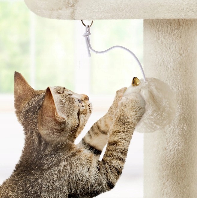 Odpinane pluszowe kulki – 2 wiszące pluszowe kulki pozwalają kotom w pełni cieszyć się polowaniem. Wyjmowane piłki możesz zastąpić inną zabawką.