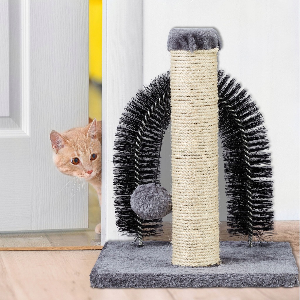 Masz dość drapania mebli lub tapet przez kota i latania luźnej sierści po domu? Ten drapak z łukiem do pielęgnacji jest odpowiedzią! Ten poręczny koci drapak łączy ostrzenie pazurów na pniu sizalowym z usuwaniem sierści w łuku do masażu. Ostrzenie i drapanie odżywia pazury, a łuk pozostawia sierść kota błyszczącą i gładką. Wieża do drapania z pluszową piłeczką również zachęca kota do zabawy.