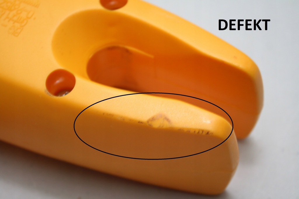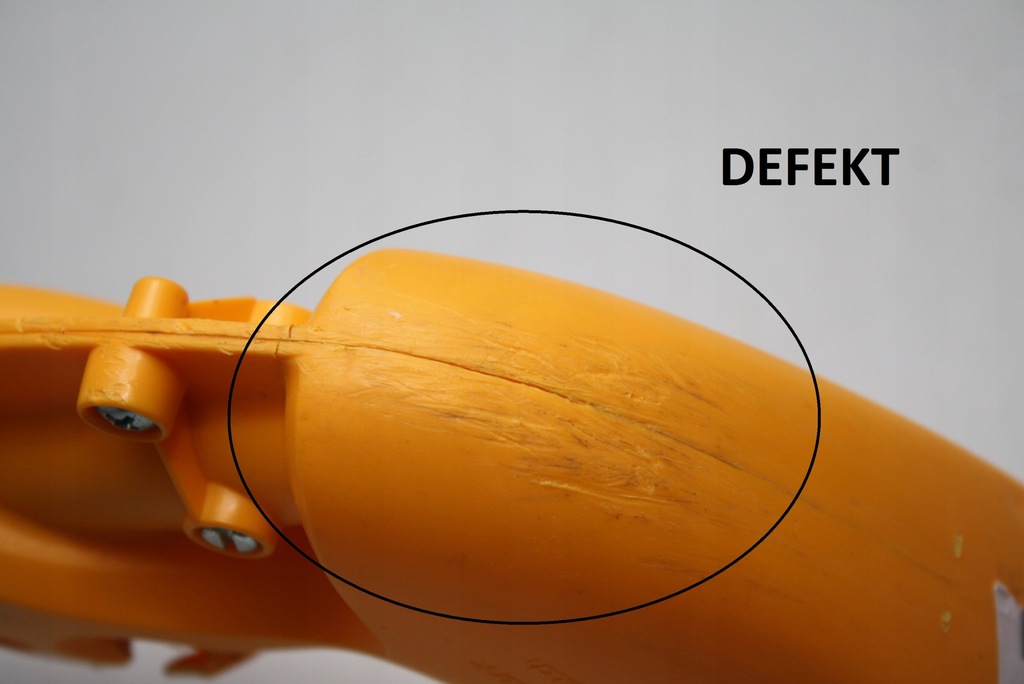 - KOMPLETNOŚĆ: Niekompletny, brak rączki umożliwiającej kierowanie. / USZKODZENIA: Pęknięty element (zdjęcie), liczne zarysowania i zabrudzenia. / OPAKOWANIE: Podniszczone.