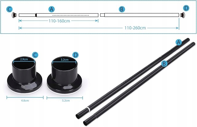 ✅ Możliwość dostosowania drążka w zakresie 210-260 cm do swoich potrzeb