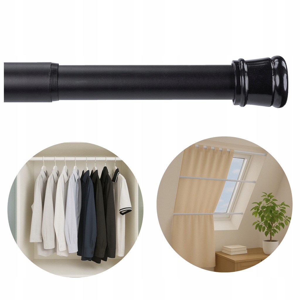 DRĄŻEK ROZPOROWY PRYSZNICOWY DO SZAFY ZASŁON REGULOWANY 110-200 cm CZARNY