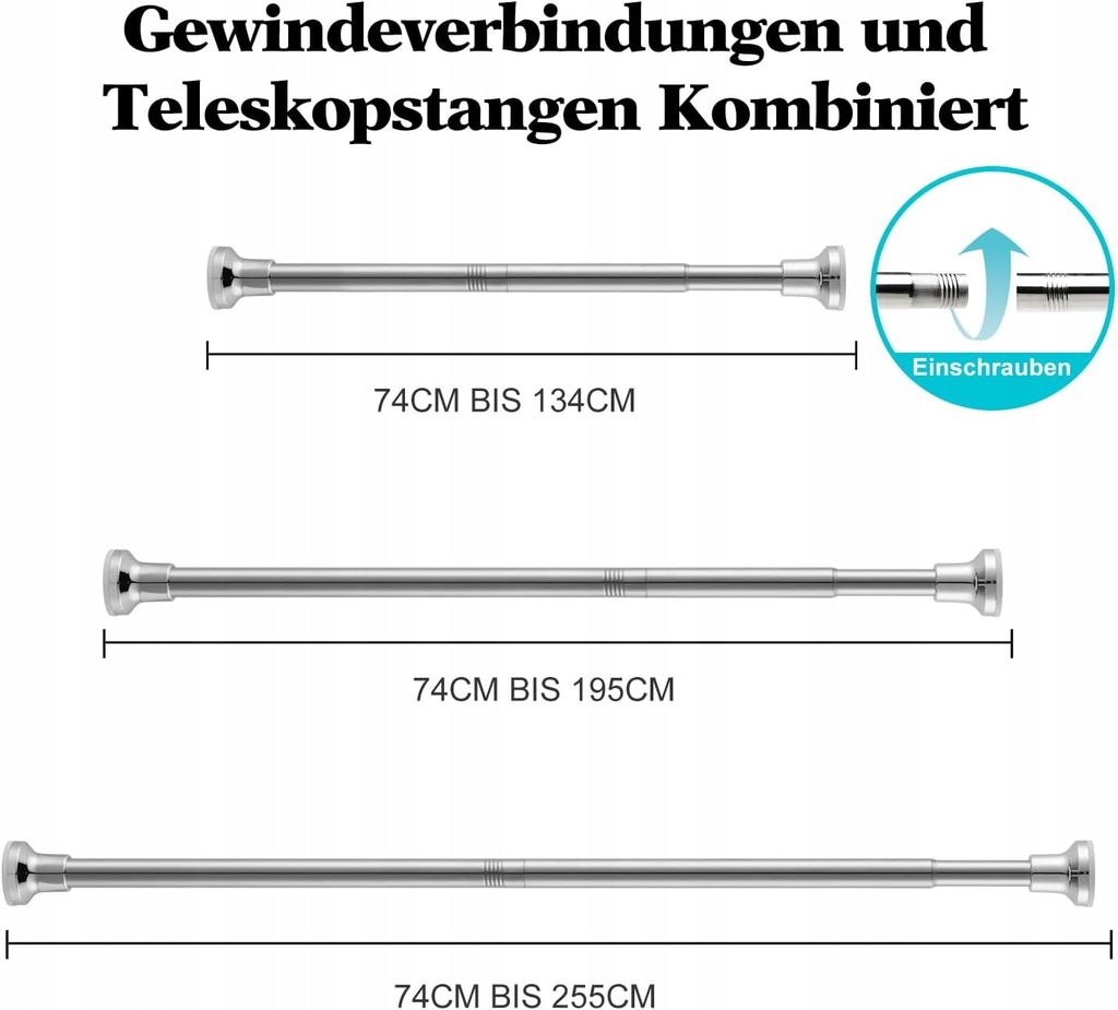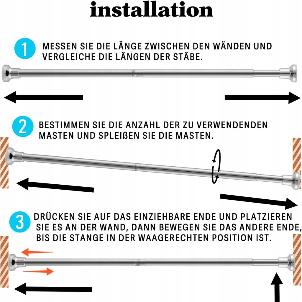 DRĄŻEK PRYSZNICOWY TELESKOPOWY KARNISZ 75-255CM ROZPOROWY WIELOFUNKCYJNY