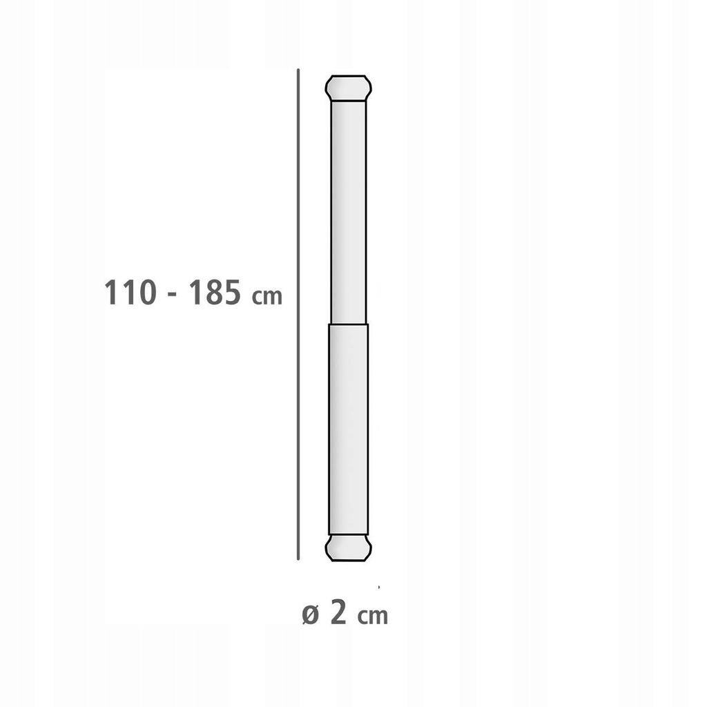 Regulacja szerokościod 110 do 185 cmpozwala dopasować drążek do każdej łazienki.Bardzo wytrzymałe tworzywo. Średnica rury 2 cm.Pasuje do każdej zasłony i zapewnia solidne mocowanie.