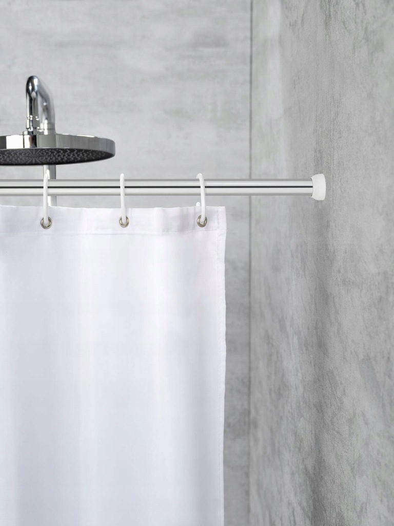 Teleskopowy drążek prysznicowy z lekkiego, chromowanego aluminium do wieszania zasłony prysznicowej. Umożliwia wygodne i szybkie zawieszenie nad wanną lub prysznicem pomiędzy dwoma ścianami.
