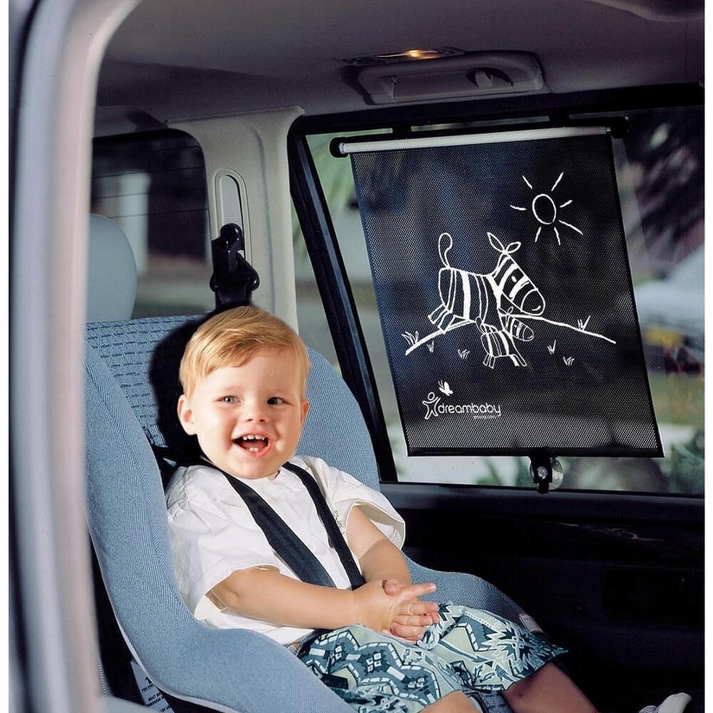 Regulowana roleta samochodowa Dreambaby chroni Twoje dziecko przed szkodliwymi promieniami słonecznymi oraz rażącym blaskiem słońca przez cały rok.