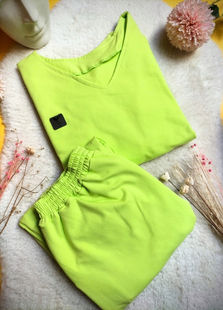 Piękny damski komplet dresowy spodnie i bluza z rękawem 3/4, w kolorze limonka, ekskluzywnej marki KOSS, wykonany z 95% bawełny, 5% elastan.