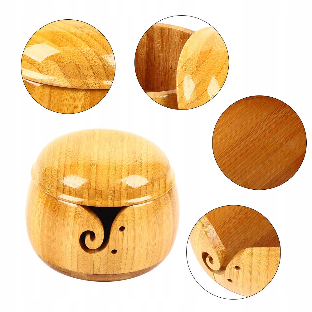 💕Dane techniczne: Materiał: bambus Średnica produktu: 15,5 cm Wysokość: 11 cm 💕Szczegóły pakietu: 1 * miska przędzy z pokrywką