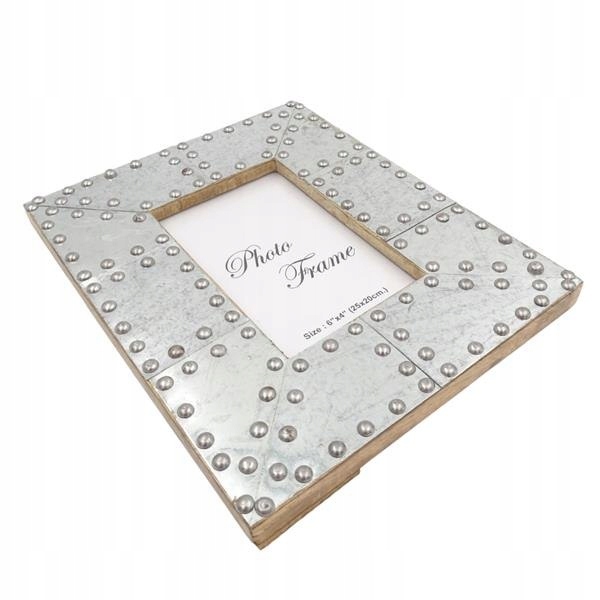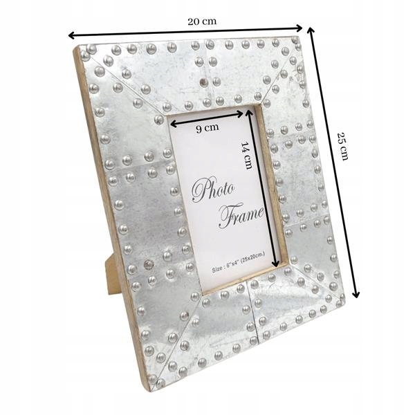 Ramka wykonana z drewna mangowego, inkrustowana metalem. Zdobienia metalowe. Format zdjęcia 15x10cm. Wymiary zewnętrzne: 25 x 20 cm. Wymiary wewnętrzne: 14 x 9 cm.