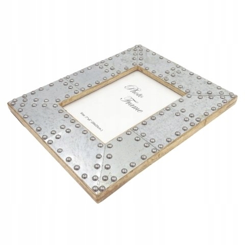 Ramka wykonana z drewna mangowego, inkrustowana metalem.