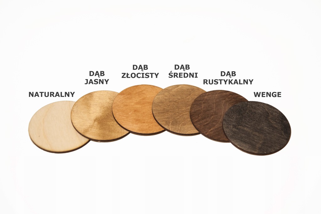 naturalna sklejka brzozowa, dąb jasny, dąb złocisty, dąb średni, dąb rustykalny, wenge.