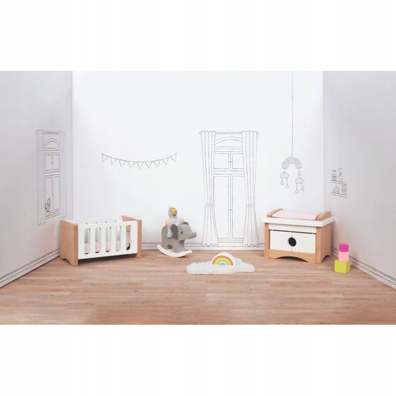 Komplet stylowych mebelków umożliwiający aranżację dziecięcego pokoiku w domku dla lalek Wszystkie elementy wyglądają bardzo realistycznie. Odgrywanie scenek z udziałem laleczek wpływa na rozwój wyobraźni i kreatywności dziecka. Kolorowe zabawki nadają zestawowi wyjątkowego uroku.