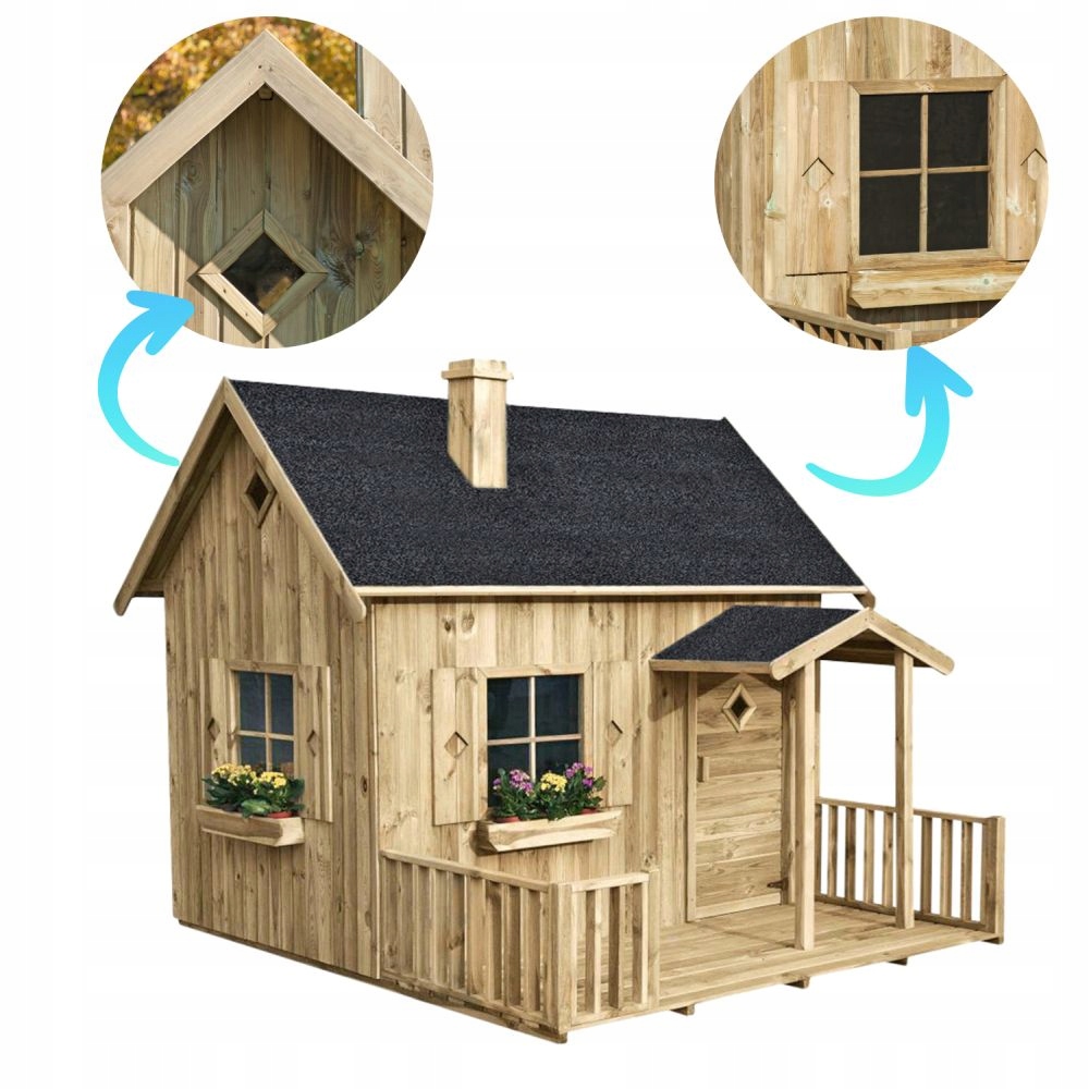 Drewniany Domek Ogrodowy dla dzieci MAJA to: