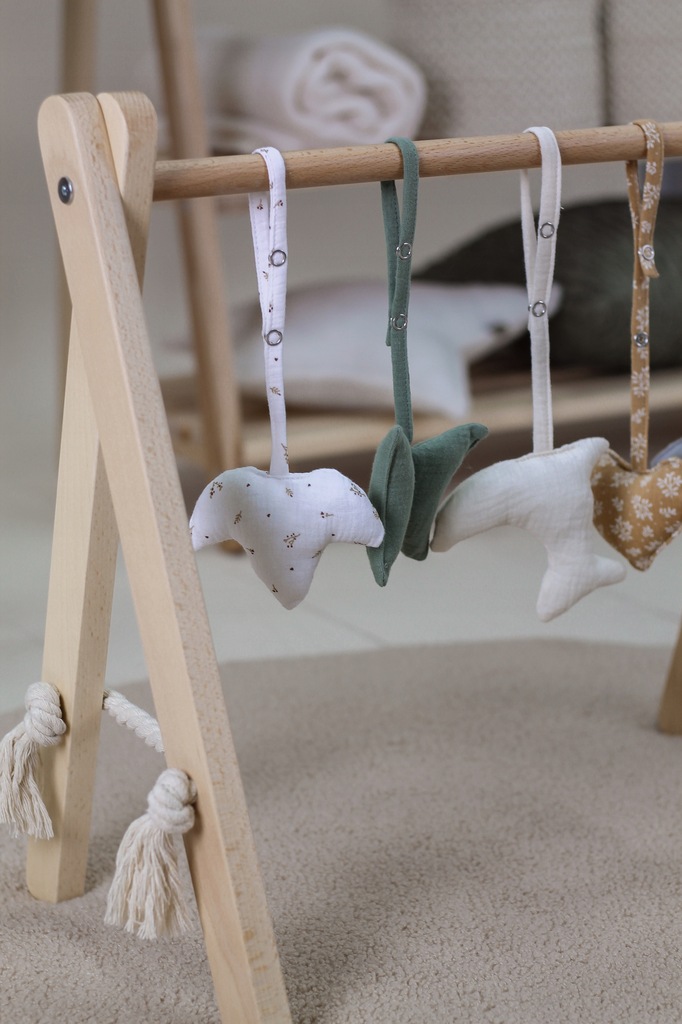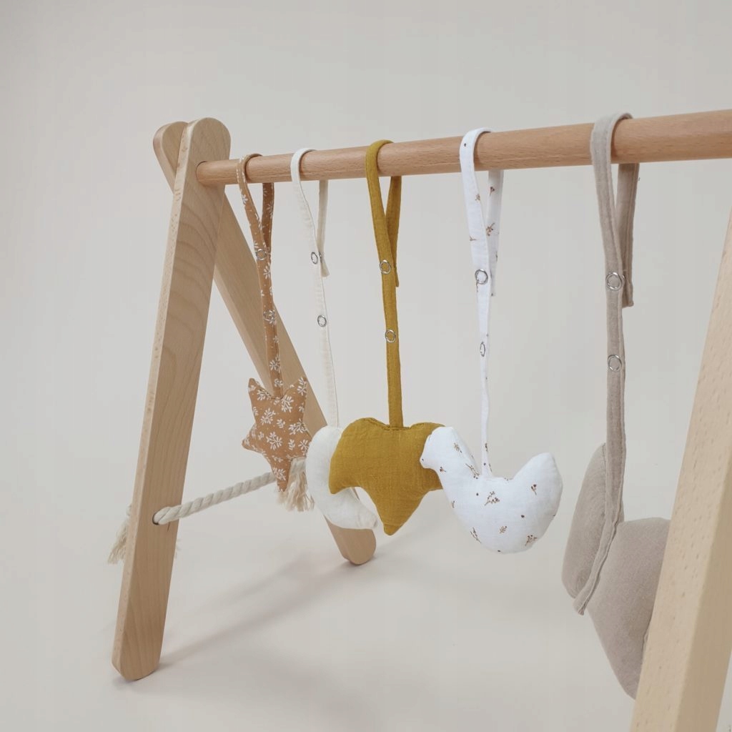 Dzięki różnorodnym elementom, stojak edukacyjny korzystnie wpływa na rozwój sensoryczny maluszka. Różnorodne kształty, tekstury i kolory zawieszek stymulują zmysły wzroku, dotyku i postrzegania przestrzennego.