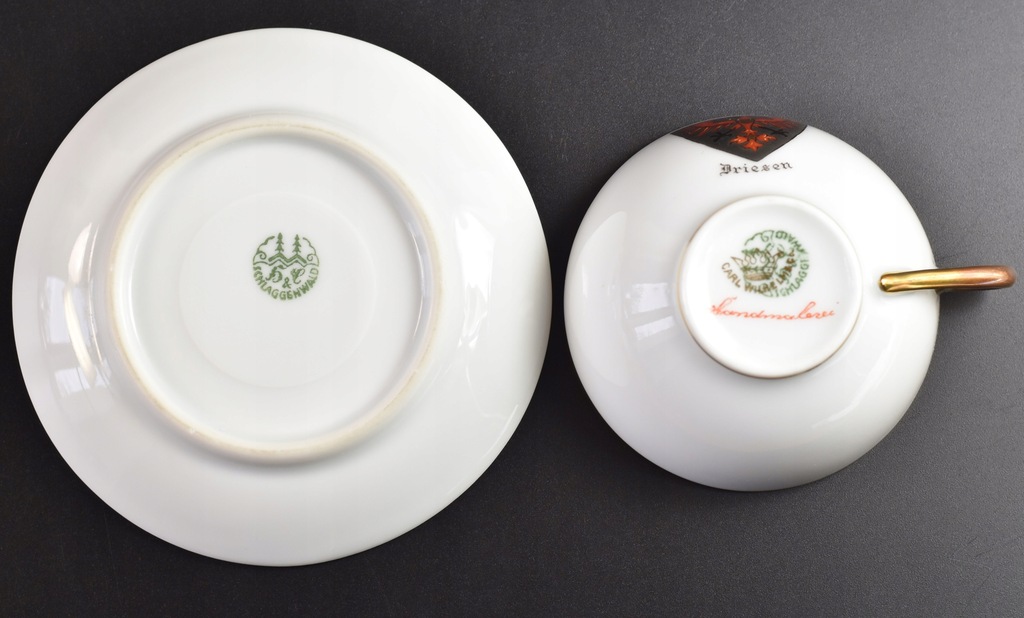 Porcelana sygnowana znakiem manufaktury Hass & Czjzek z lat 1918 1945 oraz znakiem niemieckiej malarni Carl Wilhelm & Co.