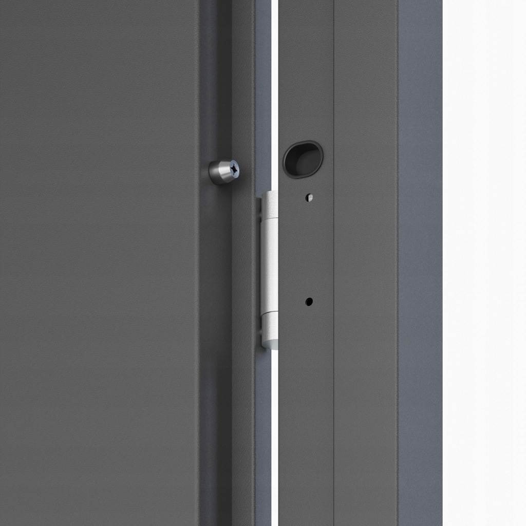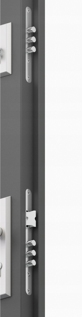 Drzwi wyposażone są w dwa niezależne zamki trzypunktowe, trzy regulowane zawiasy oraz bolce przeciwwyważeniowe.Posiadają również uszczelki w ościeżnicy oraz progu.