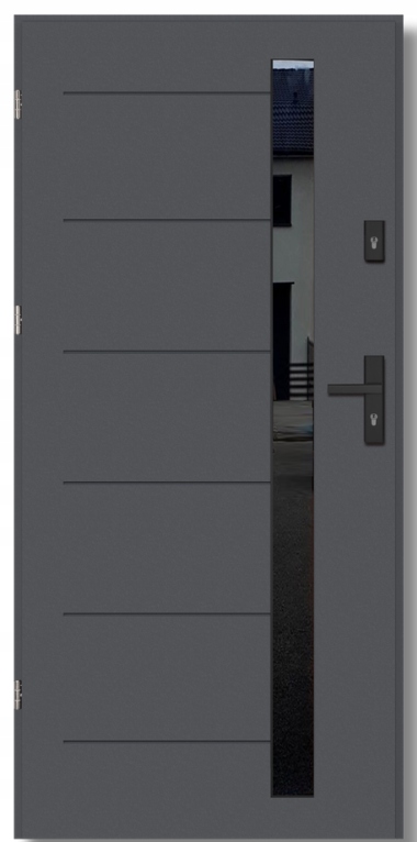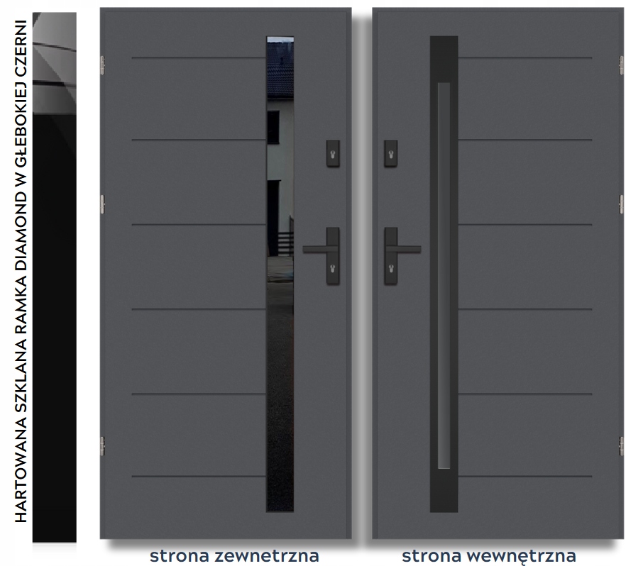 - Ciepłe przeszklenie wielokomorowe - szyba diamond antisol deep black z czarnego szjła hartowanego, od wewnętrznej strony skrzydła z stalową ramką w kolorze czarnym