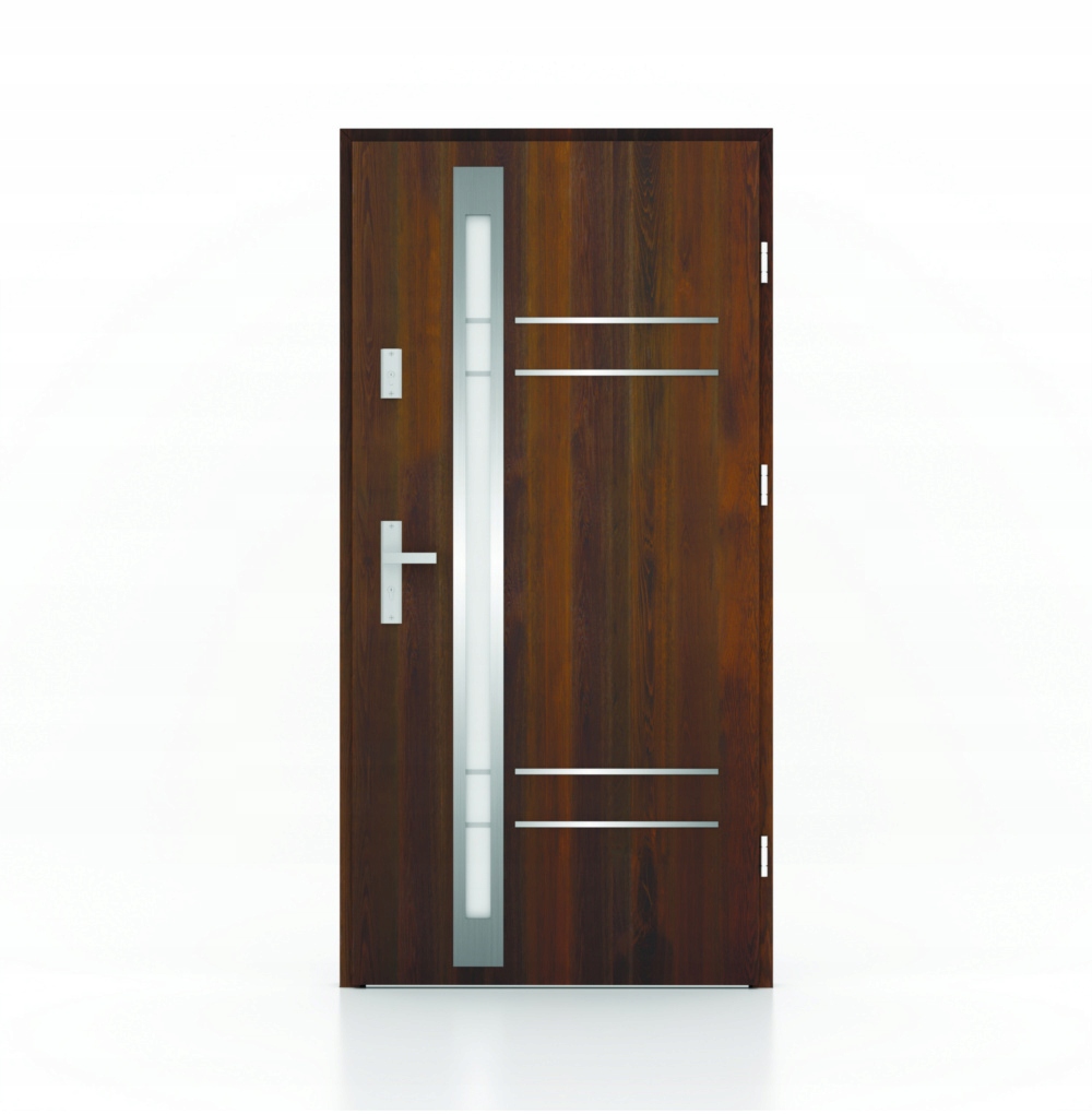 Drzwi zewnętrzne, stalowe, wejściowe SERIA 55 MODEL MONACO ORZECH LUSTRO