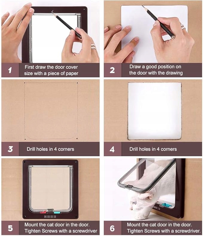 - Powierzchnia drzwiczek dla kota wykonana jest z materiału ABS, odpornego na warunki atmosferyczne, gładkiego i trwałego.